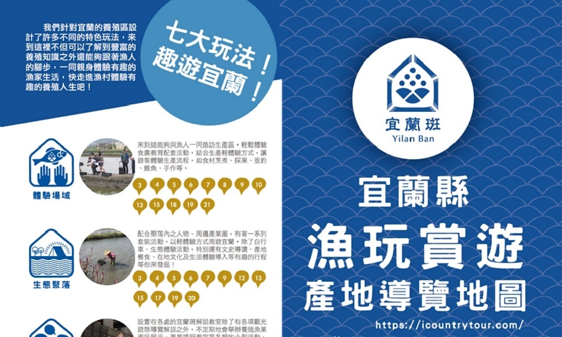 宜蘭縣透過106,107年度「設計翻轉地方創生」計劃將場域改造與加值,融合休閒漁業之產地旅行經營概念,挑選養殖業者,海歸養殖青年,地方社造造工作以及私廚業者等,進行創新營運輔導,吸引在地廢棄魚塭有意願轉型,創造閒置魚塭新的營運方式。