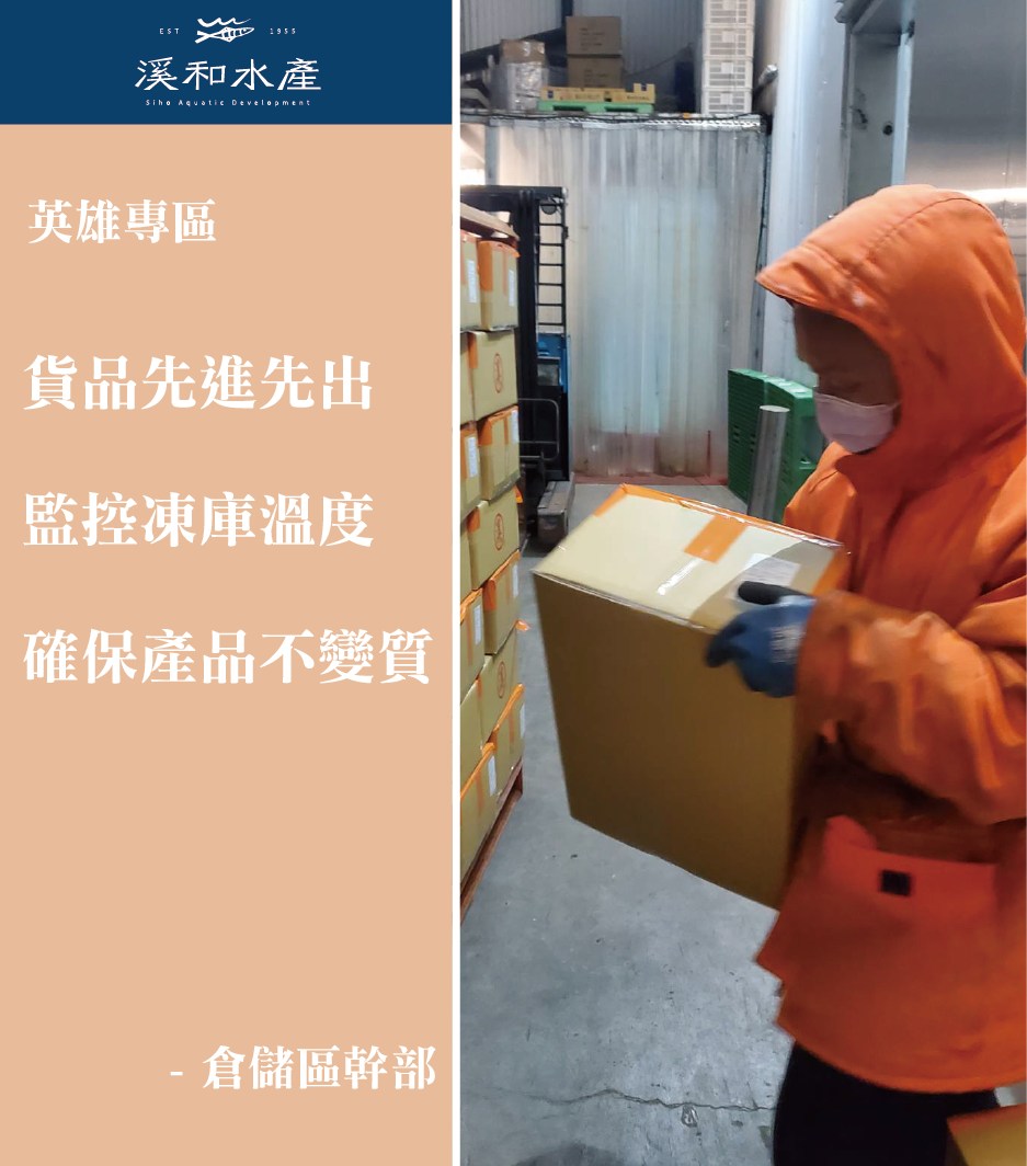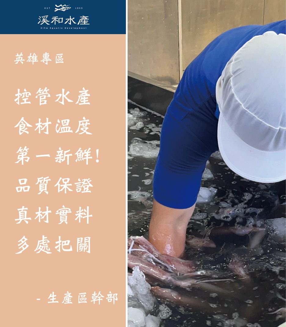 宜蘭海灣位處太平洋洋流上,以龜山島為屏障,蘭陽平原注入豐沛的高山溪流,海岸線綿延近 101 公里,溪和水產鄰近於宜蘭灣之大溪漁港、南方澳漁港兩大港口,掌握宜蘭縣境內最新鮮的漁獲水產資源,透過細緻的加工及冷鏈流程設計,可以在最短時間內完成整體加工流程,配合現代化 CAS 冷凍儲存設備(細胞活存保鮮技術,Cells Alive System),讓水產產品保持在最新鮮的狀態下出貨。